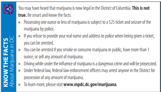 As such, the Post reports that MPD has released these wallet-sized (and, perhaps coincidentally—or perhaps not!—rolling paper-sized) cards to remind D.C. citizens about D.C.’s marijuana decriminalization law: