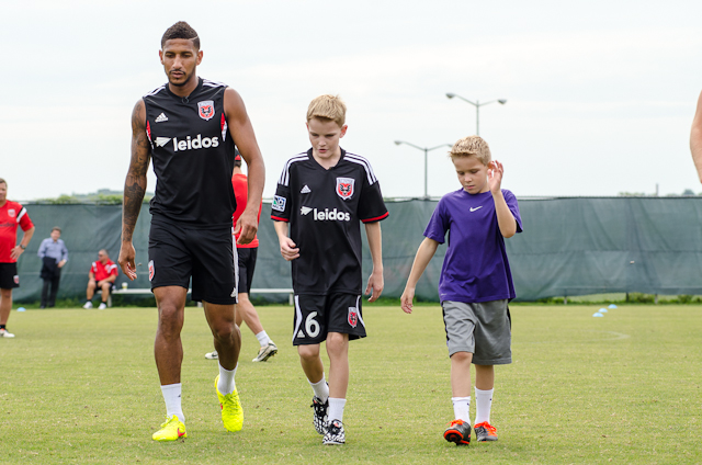 Being a professional soccer player is hard work, of course, and Jordan would next face the rigors of a training session just a day before a nationally televised contest. He breezed through warm-ups and a series of keep-away games, his brother always at his side. When United moved into a scrimmage later in the day, the youngster floated nearby, soaking in whatever he could from the experience.