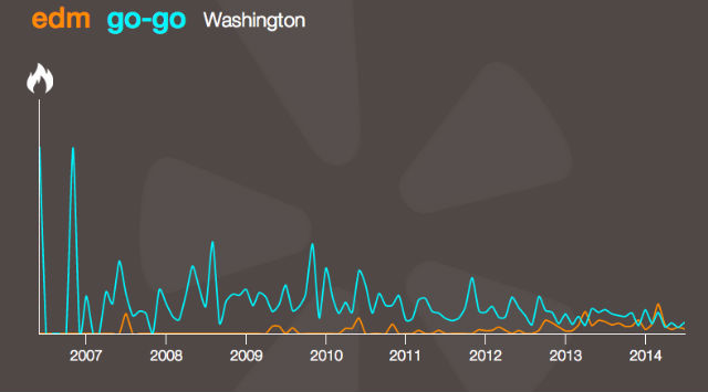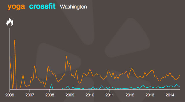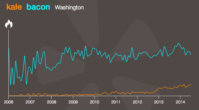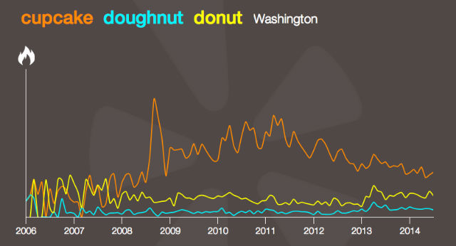 Below are a few of the trend charts we created for D.C. As you can see, D.C.’s love affair with the cupcake began to dip after 2011, but the treat hasn’t been replaced by doughnuts in popularity. Make your own here and leave them in the comments.