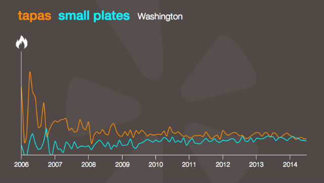 From food trends to popular slang to short-lived beauty fads (Brazilian blowout anyone?), Yelp Trends searches through words used in Yelp reviews to show you what’s hot and reveals the trend-setting cities that kicked it all off. Our massive wealth of data and the high quality reviews contributed by the Yelp community are what allow us to surface consumer trends and behavior based on ten years of experiences shared by locals around the world.
