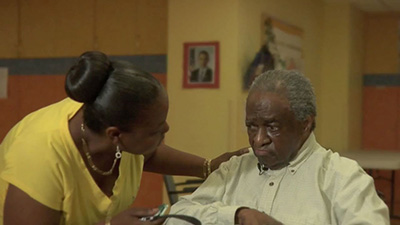 Henry (Courtesy Bond/360)From my Spectrum Culture review: “When we meet Henry, he’s practically catatonic. His daughter tells us how vibrant he once was, and photos of the young Henry show a debonair, stylish man full of life. When an assistant at the nursing home where he lives fits headphones onto her patient and plays him some music, Henry starts vocalizing, at first painfully out of tune. This is one of the heartbreaking scenes in Alive Inside, a documentary about the use of music to reach elderly patients suffering from dementia. If the film were simply made up of sequences like this, it would be a harrowing and moving experience. But director Michael Rossato-Bennett all but ruins great material and good intentions with techniques that slather his inherently sympathetic subjects in cheap sentiment. In the hands of Werner Herzog, or even a journeyman documentary filmmaker who knew the meaning of directorial restraint, this could have been a four or five star documentary. But whenever the movie cuts away from its heartbreaking subjects to a chart or a diatribe or an “authority,” whenever you hear the Sensitive Narrator with the dramatic pauses who sounds like the hippie teacher on “Beavis and Butthead,” whenever the rippling piano score reminds you to feel sentimental (as if you didn’t already), the movie takes a horrible step in the wrong direction.”