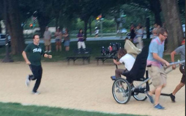 Here, via the subReddit One True God, is a photo of Cage running on the Mall.