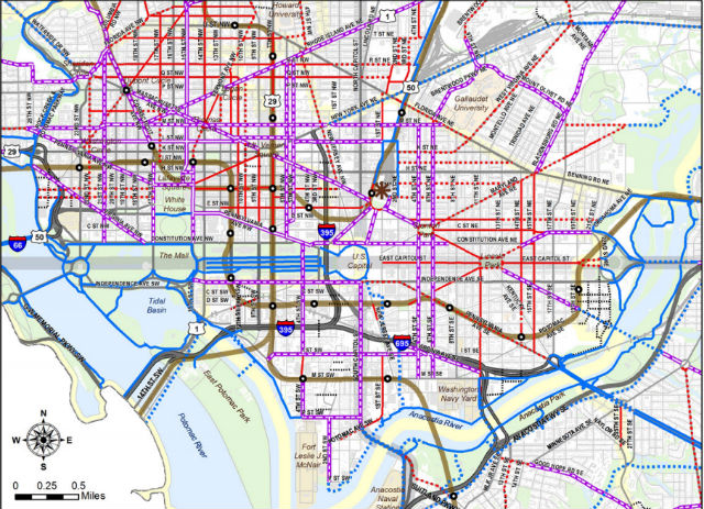 The MoveDC plan, released by the D.C. Department of Transportation in May, puts an emphasis on cycling and transit and encourages a reduction in vehicle traffic through several means including a downtown toll. By 2040, the plan calls for 75 percent of all commutes in D.C. to be non-auto.