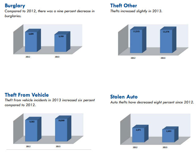 The report notes that the city’s 104 homicides in 2013 includes the 12 people killed during the Navy Yard rampage in September. “Scores of MPD members rushed to the scene and entered Building 197, even though they had very limited information about the situation,” MPD Chief Cathy Lanier writes in the report. “I mourn the loss of the 12 individuals who were killed that day and still don’t understand how a single person can choose to cause so much pain and anguish. But I am also incredibly proud of the bravery and selflessness exhibited by so many members of this Department that day. I believe that without the swift response by law enforcement, we would have suffered the deaths of more innocent Navy Yard workers.”