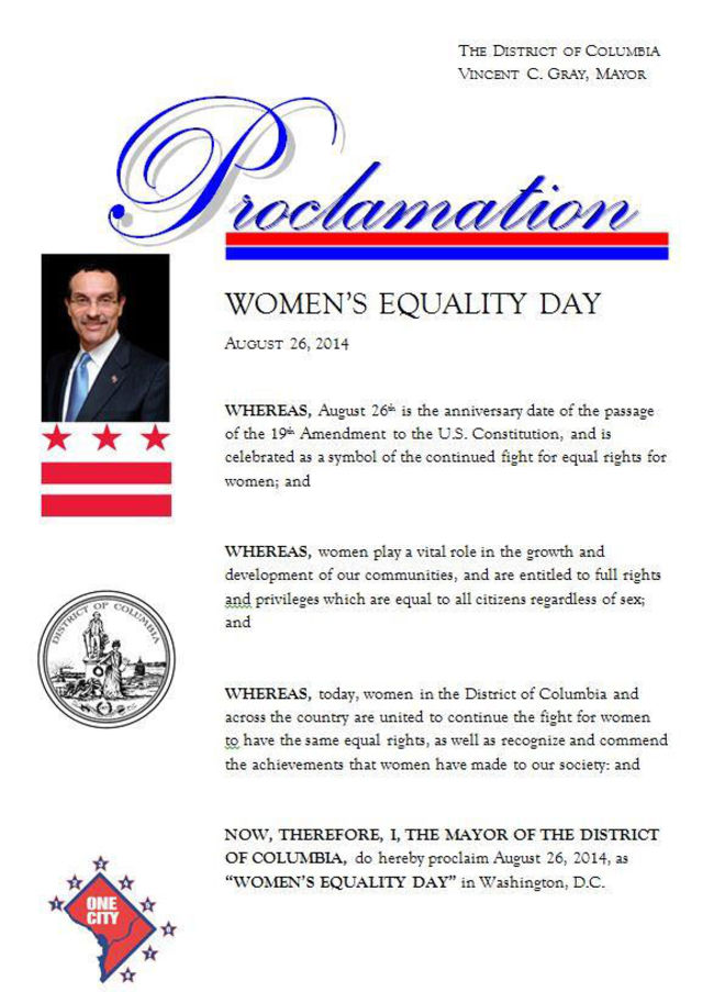 Mayor Vincent Gray has officially declared today, August 26, Women’s Equality Day in D.C.