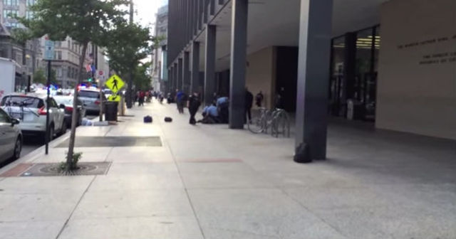 Andrew Heining, a mobile engagement producer at the Washington Post, filmed the restraint of a man by several Metropolitan Police Department officers outside the Martin Luther King Jr. Memorial Library on September 7 at 6:24 p.m.