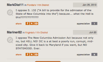Via Pop Vox.Burch has urged D.C. residents to take the afternoon off and attend the 3 p.m. hearing, which will be streamed here. Indeed, with an overwhelming majority of Americans opposed to equality for D.C.’s residents — “not only no, but HELL NO!” — it will take a concentrated push by the people who live here to achieve statehood.