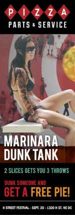 According to a release, Pizza Parts & Service will set up a “Marinara Dunk Tank” in front of their building near 13th and H. Two slices of pizza gets a person three throws. A successful dunking will earn said person a free pizza that, hopefully, they share with the person who they submerged in marinara sauce. A spokesperson told Young & Hungry that Pizza Parts went with the tank instead of a “boring and wasteful” eating contest.