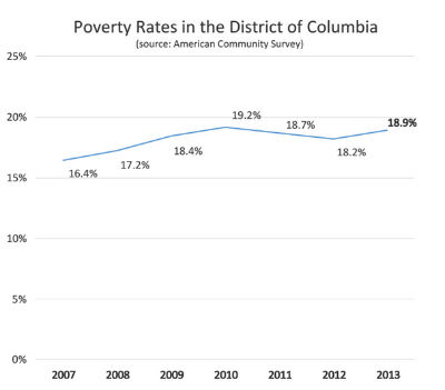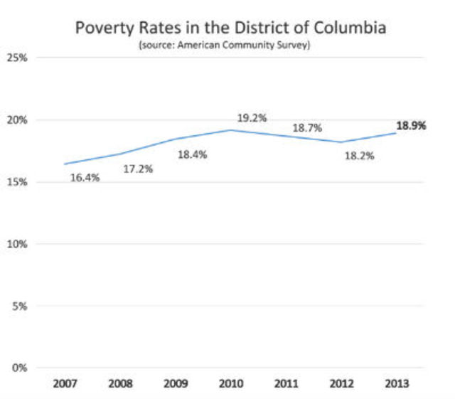 Via DCFPI.In 2013, 115,551 people were living below the poverty line in D.C., according to new numbers from the Census Bureau’s American Community Survey.
