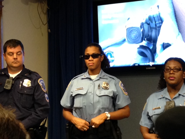 Earlier today, Mayor Vince Gray and Metropolitan Police Department chief Cathy Lanier announced a new pilot program to require MPD officers to wear body cameras on their person at all times.”Testing body cameras on officers is a way to foster transparency in law enforcement and improve police services and community relations,” Gray said during at press conference. “We believe that the body-worn cameras will improve police activity as the city’s population grows.”