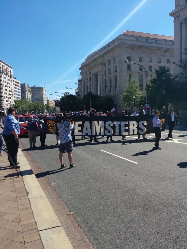 “Give us justice!” drivers holding a Teamsters banner shouted as police initially stopped vehicles at 13th Street and Pennsylvania Avenue NW. Cab drivers were eventually allowed to continue toward Freedom Plaza and the Wilson Building, where most of the anger was directed.