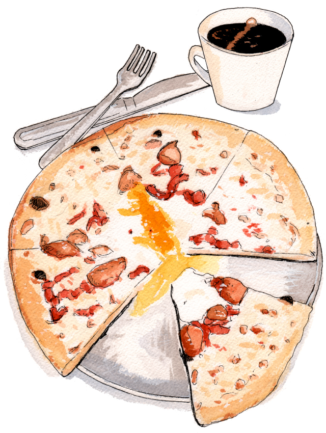 It’s a great place to have brunch, and the breakfast pizza is an indulgent favorite. It has a white cream sauce and is topped with shredded mozzarella, crumbled bacon, thick-cut homefries, drizzled maple-syrup, and of course — a sunnyside egg. “I’m a big fan of egg on pizza,” Glulfing says. I couldn’t agree more.