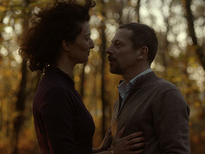 Stéphanie Cléau and Mathieu Almaric (IFC)Julien (Mathieu Almaric) is a married, middle-aged John Deere rep having an affair with Esther (Stéphanie Cléau), a woman married to a rich older man. Will adultery lead to murder? Almaric is better known in these parts as an actor, but his 2010 film On Tour won him a Best Director award at Cannes. He directs this adaptation of a Georges Simenon thriller with a cool fragmented narrative that runs an efficient 76 minutes, and for the first hour this is a taut and effective film. But despite its brief length, the film is stopped in its tracks by an awkward courtroom sequence that nearly undoes the stylish invention that preceded it.