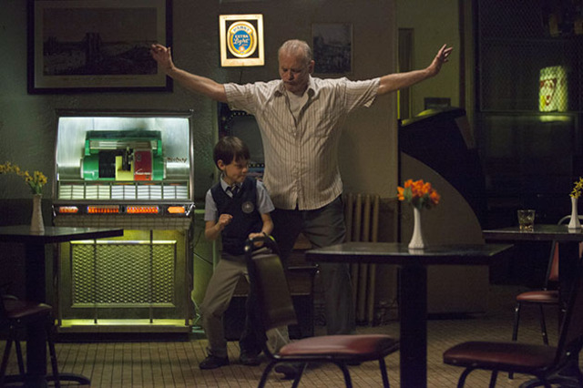 Single mother Maggie (Melissa McCarthy, strong in a dramatic role) and her son Oliver (newcomer Jaeden Lieberher) move into a Sheepshead Bay house next door to Vincent, a cranky son-of-a-bitch with a grumpy cat and a habit of verbally abusing anybody he encounters. Maggie works the night shift as a medical tech, and when her son is locked out of the house on his first day at school—his keys stolen by bullies at his new parochial school—Maggie is forced to ask Vincent to watch Oliver while she’s at work. He doesn’t seem to be doing it out of the kindness of his heart—he asks the struggling single mother for an hourly wage. The script never lets you see Vincent have an unselfish moment—until it does.