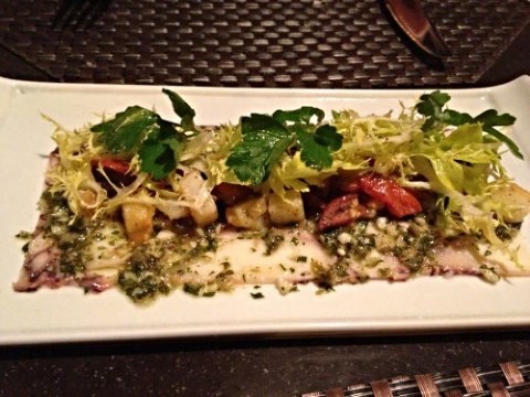 At Alba Osteria, chef Amy Brandewein has been known to thinly slice octopus as an occasional special. The acidity and strong flavors or lemon, garlic, and capers sauce an octopus salumi platter that jolts the taste buds into alertness. The octopus is laid out in a neat, clean rectangle, unrecognizable from the slimy, tentacle laden blob it started its journey as. Techniques such as rolling in plastic wrap or stuffing into a mold of boiled lobster are the integral steps in setting up an octopus carpaccio dish. Once the gelatin in the cooked octopus congeals, the cephalopod can be thinly cut and shaped as the chef pleases.