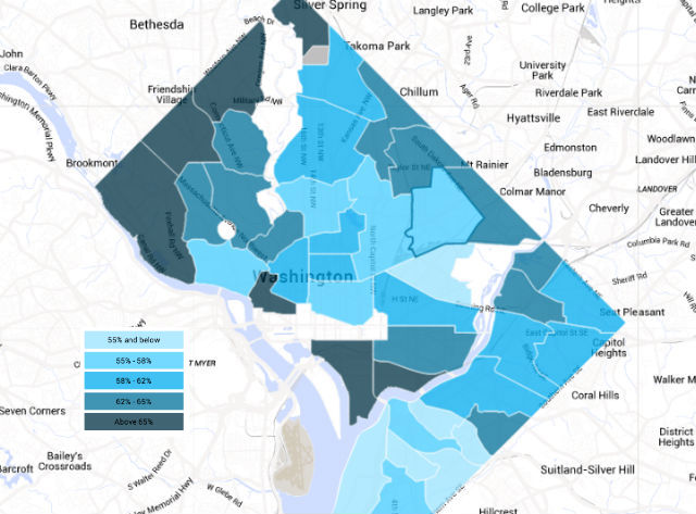 D.C. Action for Children added data about the 2012 election to its map tool, showing which areas of the city were most engaged two years ago. The map also displays the level of child poverty in each area. Compare that to a map showing turnout in the April 2014 primary from the Washington Post.