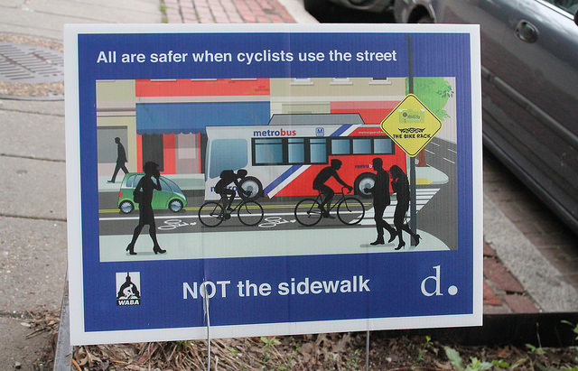 The Sidewalk Safety Act of 2014 would extend the prohibition on sidewalk riding from the central business district to “wherever a bicycle lane is available,” the Ward 1 Councilmember said today.