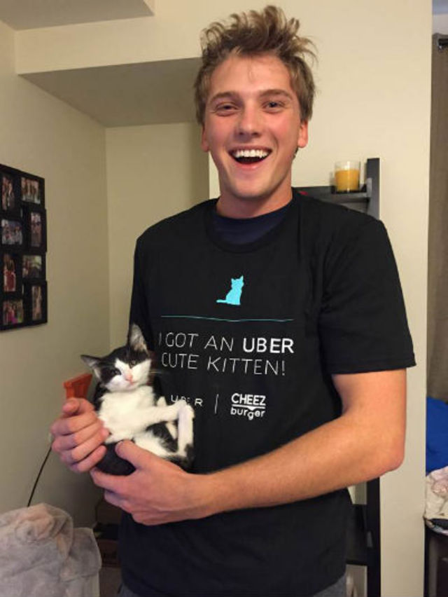 A GW student with an Uber kitten. While yesterday’s Uber kitten promotion had some of you squealing (they’re so tiny!) and others grousing (cats aren’t toys!), the feline delivery was a success for the Washington Humane Society.