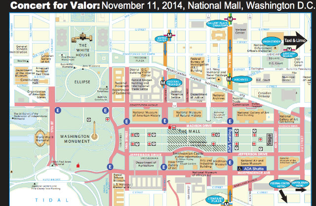 Veterans Day is Tuesday, and with it comes a massive concert—The Concert for Valor—on the National Mall courtesy of HBO and Starbucks. The Boss will be there. So will Eminem. And Rihanna. And Dave Grohl. And a lot more famous people. Predictably, the area around the Mall will be a commuting nightmare, as there are going to be a number of road closures. Here’s a list of all of them via the Metropolitan Police Department and the National Park Service: