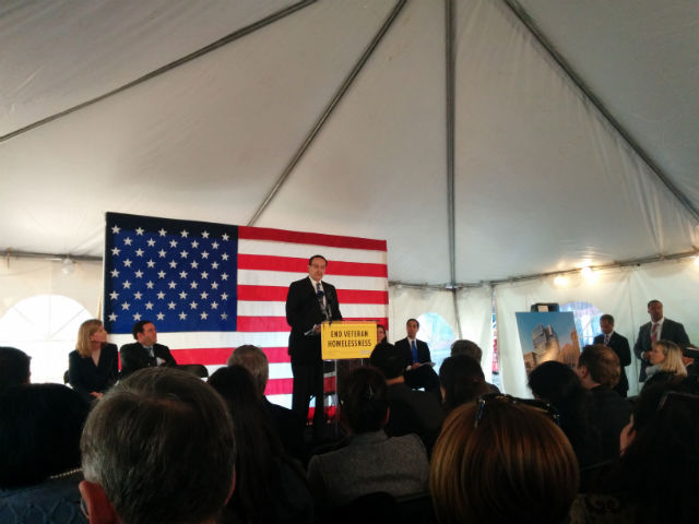 Mayor Vincent Gray, Housing and Urban Development Secretary Julián Castro and private partners gathered today at the future site of a 124-unit building in NoMa that will house homeless veterans.