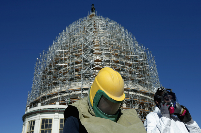Today’s tour and press conference marks the completion of the first phase of the dome’s restoration, which is to add 52 miles of scaffolding so that workers can get to work on repainting and repairing. According to the Washington Times, the $60 million renovation projected must be completed—and the scaffolding down—”before the presidential inauguration in January 2017.”