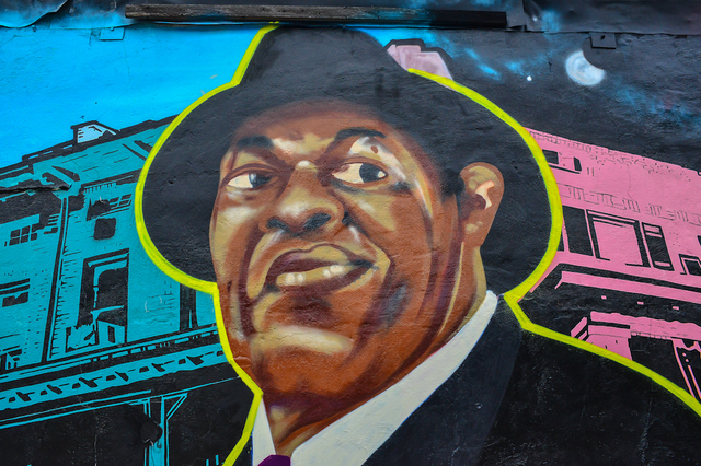“I painted [the original] mural for Head-Roc in August for his album Black Rockstar Superhero. There’s a song on it called “Mayor for Life,” about Marion Barry. We wanted to film a documentary today about the wall and his album and stuff. We’ve been planning to put [local activist, radio/TV host] Petey Green and the mayor on this wall. Since he passed last night, I said, ‘I have to put this portrait up today right in the middle.’