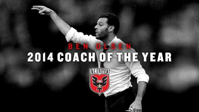 D.C. United’s Ben Olsen has been named Major League Soccer Coach of the Year, after a season that saw the Red and Black rebound in a major way from a spectacularly bad 2013.