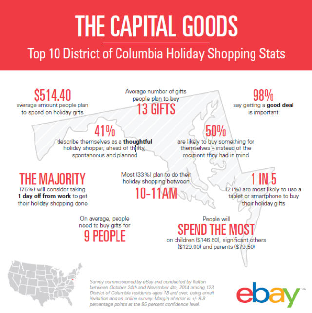 This includes how much D.C. residents spend on average ($514.40), how many gifts they buy (13) and whether they’d take time off work to shop (Of course).