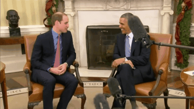 WH press pool struggles for position in Pres Obama photo op with Prince William. Imagine if Kate were along. pic.twitter.com/OxVEb8Icza