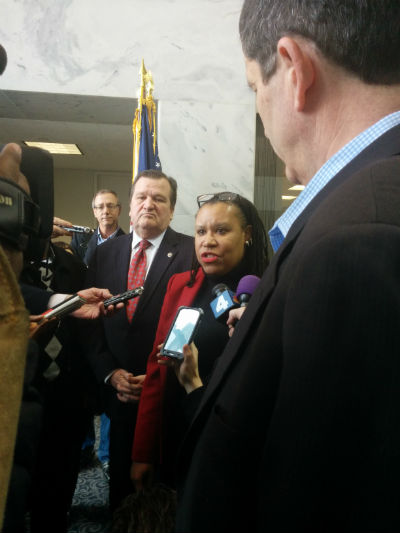 Perry was joined by Shadow Sen. Michael Brown and marijuana activist Adam Eidinger, who led the successful effort to get marijuana legalization on the November ballot. They were joined by a handful of private citizens.