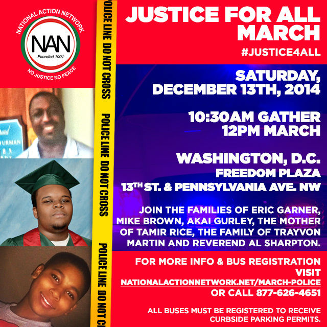 The march, originally called the National March Against Police Violence, will begin at Freedom Plaza and will be attended by the families of Michael Brown, Eric Garner, Akai Gurley, Trayvon Martin and Tamir Rice — five black males, between the ages of 12 and 43, who were killed in separate incidents by a police officer while unarmed.