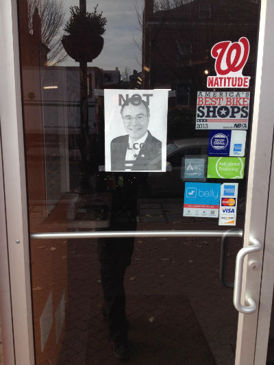At least one business, Capitol Hill Bikes along Barracks Row, put up a sign displaying Harris’s face with the message “Not welcome.”