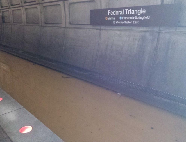 Photo showing water level after receding at Federal Triangle. #wmata pic.twitter.com/pjGqGQ9kmL
