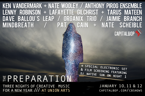 >> CapitalBop continues to kill it with the shows it has been presenting. Just weeks after inaugurating its Traveling Loft series, CapitalBop kicks off 2015 with The Preparation, three nights of creative music taking place Saturday through Monday at Union Arts. Each night features two or three acts and there are no weak links in the program. Highlights include Baltimore-based trumpeter Dave Ballou with LEAP, ace local drummer Lenny Robinson with Lafayette Gilchrist and Tarus Mateen, and guitarist Anthony Pirog. The duo of saxophonist and MacArthur “genius” Ken Vandermark with trumpeter Nate Wooley closes the event. 7 p.m. doors. $10 for each night or $28 for an event pass.