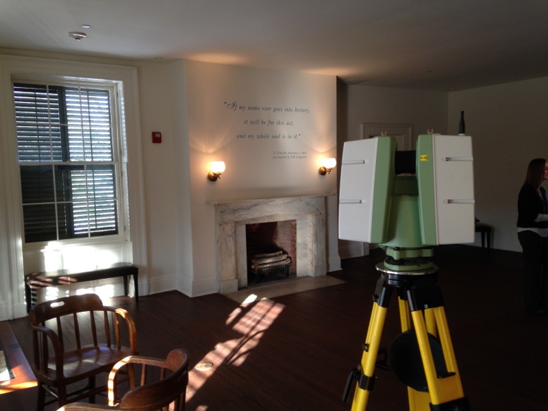 On the second floor of President Lincoln’s Cottage, next to a replica of the desk where Abraham Lincoln drafted the Emancipation Proclamation, a $95,000 laser contraption sits on a tall yellow tripod.