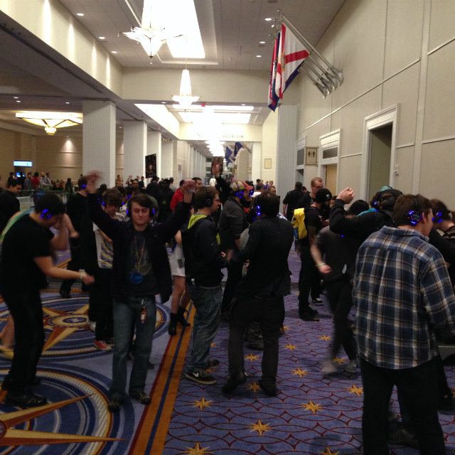 So here’s the deal with MAGfest: It’s not quite an “anything goes” festival, but there’s a fair amount of “looking the other way,” as I soon learned. As the Gaylord Hotel is a resort, you’re technically not supposed to bring booze in (they sell it), but we did it anyway. You’re technically not supposed to drink on the gaming floor, but, so long as you’re discreet, no one seems to mind (and a lot of others are doing it too).