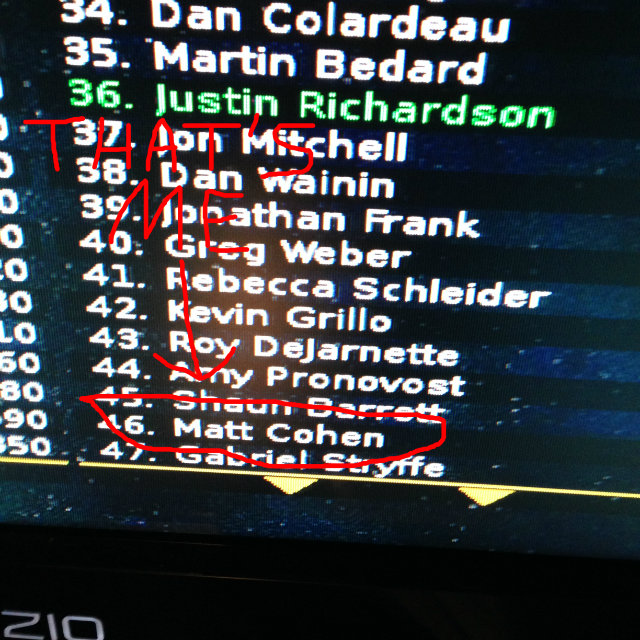 4:10 p.m. – 5 p.m. I frantically and, quite pathetically, play all the tournament machines. I come in 46th place on the Meteor machine.