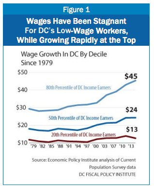 A new report from the D.C. Fiscal Policy Institute on the District’s economic recovery since the recession has found that the wage gap between the city’s rich and poor is at a 35-year high.