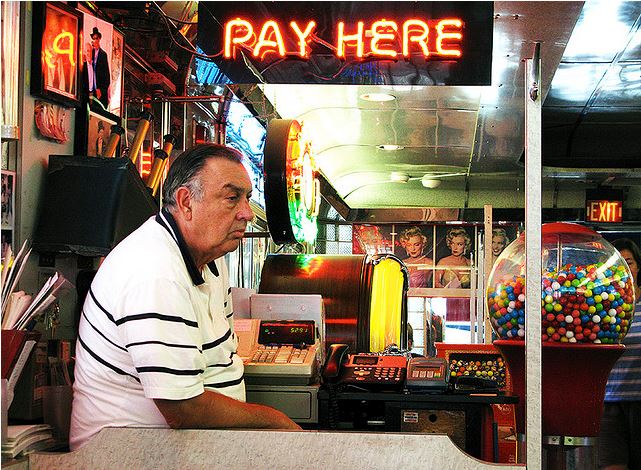Twenty-something hippie-ish cashier guy: “Hey how’s it goin’?”