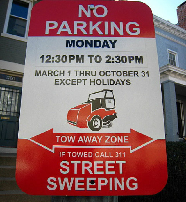 Street sweeping season, which usually lasts from March 1 to October 31, usually means that District motorists can’t park on certain streets during certain days, lest face a fine of $45.