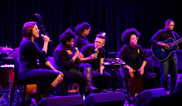 But how’s the space for catching shows? Reagon and Miller were thoughtful choices for the grand opening. Though both of them are currently based out of New York, they have strong connections to the D.C. area. Reagon’s mother is Bernice Johnson Reagon, who founded Sweet Honey in the Rock over 40 years ago, and who also provided last night’s most touching moment when she harmonized with her daughter from the audience. Miller grew up in the Maryland suburbs and regularly returns to perform in the area, both with her own group and as a member of other bands. Reagon and Miller are also highly respected artistic voices within the LGBT community.