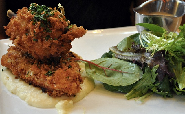 CENTRAL: If you’re all about the crust, Central’s fried chicken has got your number. The craggy pieces get their signature texture thanks to a mixture of bread crumbs and chicken shavings, stock, and milk (dubbed chicken “mayonnaise”). Yeah, it sounds a little horrifying, but it’s hard to argue with the ultra-crusty, golden brown exterior—one bite and you’ll forget all about that chicken mayo. As an added bonus, the bird is served upon a bed of buttery mashed potatoes, and no one makes potatoes quite like the French. — Alicia Mazzara
