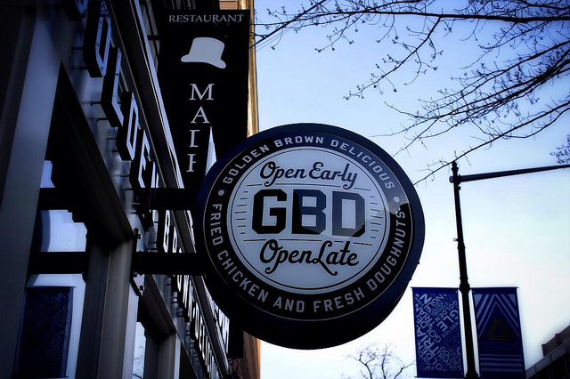 GBD: When you order fried chicken from a restaurant whose initials stand for Golden, Brown, Delicious, you know you’re in for a treat. While home to the infamous Luther sandwich, you can also get your fried chicken here sans bacon and a donut bun, if you’re into moderation. The Dinner for 4 is a great way to enjoy the perfectly crispy-on-the outside, moist-on the-inside chicken—$40 gets you a bucket with eight pieces of chicken, a large coleslaw, two sides of your choice and four deliciously flaky biscuits. If you find yourself craving fried chicken for breakfast, GBD opens at 8 a.m. Monday-Friday and offers a fried chicken biscuit sandwich to get your day started right.—Elizabeth Packer