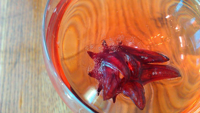 A hibiscus calyx in prosecco. (Alicia Mazzara)