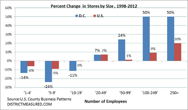 Of course, as District, Measure notes, stores with fewer than 20 employees account for more than 85 percent of all retail stores in D.C., even though they’re declining.