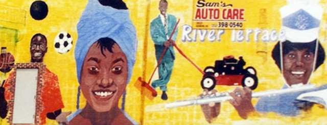RIVER TERRACE MURAL: I’m a sucker for the kind of vintage style that artist Cheryl Foster employed for her River Terrace mural in Benning Heights. It borders on outsider art while evoking the heavy and colorful style consistent with a lot of commercial art in the ’50s and ’60s. — Matt Cohen