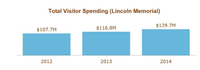 For those who really want to nerd out on park data, the Park Service breaks out the visitor spending by state as well as the figures for a number of the most popular sites in the country. Meditate on the $$$ next time you’re surrounded by shrieking school children at the Lincoln Memorial.