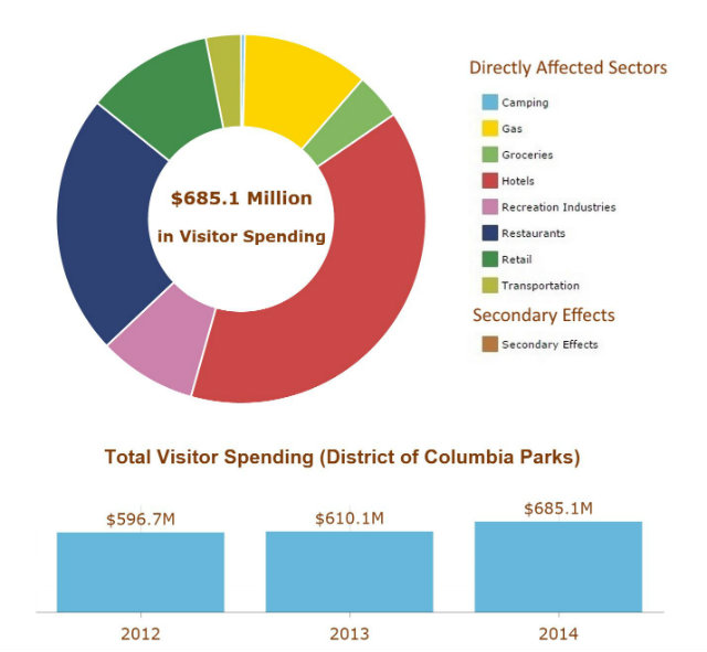 “The national parks in the greater Washington area attract visitors from across the country and around the world,” Regional Director Bob Vogel said in a release. “This new report shows that national park tourism is a significant driver in the national economy—returning $10 for every $1 invested in the National Park Service—and a big factor in this region’s economy as well.”
