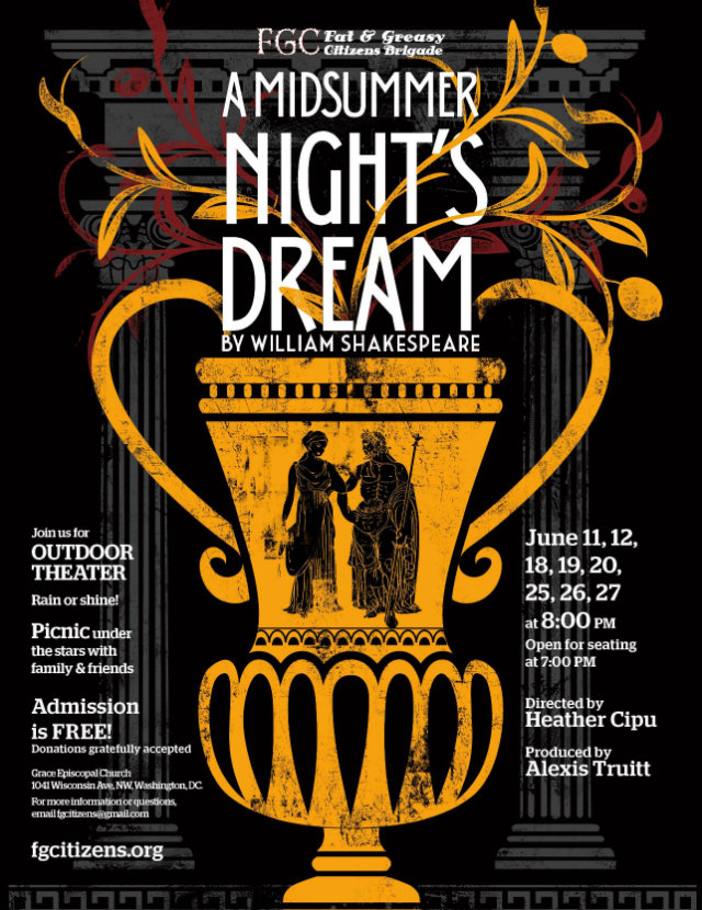 Now in their third summer, they are back with A Midsummer Night’s Dream on June 11-12, 18-20, and 25-27. They’ll take place at Grace Episcopal Church in Georgetown (1041 Wisconsin Avenue NW) at 8 p.m., though audience members can show up an hour early to get a prime blanket laying spot.