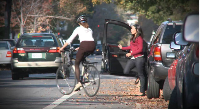 Getting doored—being hit by the door of a vehicle as someone is exiting—is one of most cyclists’ biggest fears. It is also one of the most difficult road hazards to avoid, since most bike lanes are within the so-called “door zone” and it is hard to predict when people in cars aren’t paying attention.